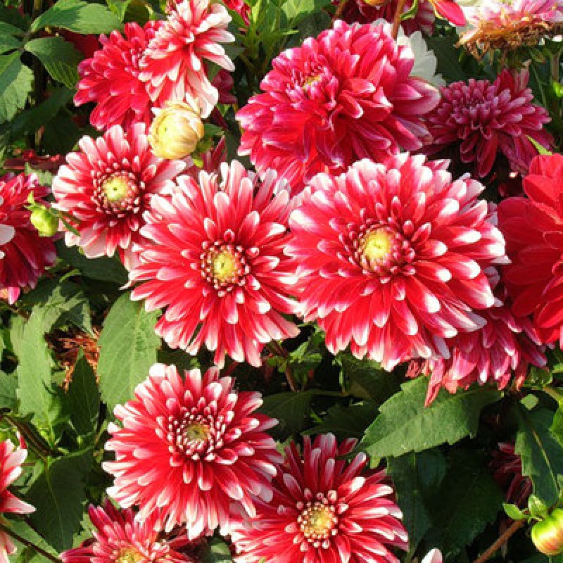 Куст мощный, пышный, стебли полые, высота растения 40-50 см, цветок ярко-красный с белыми кончиками, диаметром 10 см. Листья тёмно-зеленые, многочисленные. Цветет обильно и продолжительно с июля по сентябрь. Предпочитает солнечные, защищенные от ветра места. Используется для групповых посадок и на срезку. Не требует дополнительных опор!!! Устойчива к неблагоприятным условиям, к болезням и вредителям.